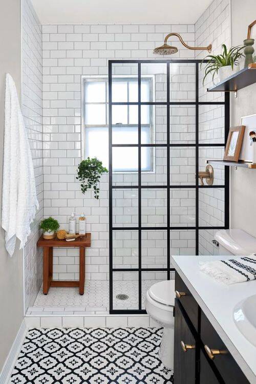 You can never go wrong with a black and white combo. It’s a classic. The black divider separates the basin and shower area, making it look more organized.