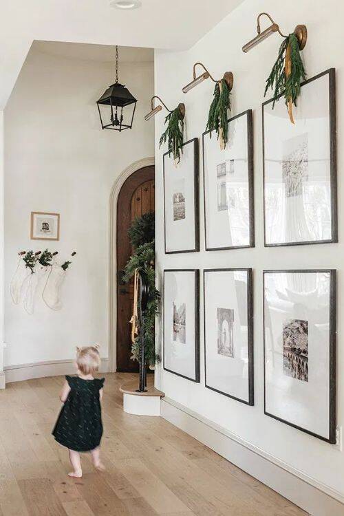 I think a gallery wall shows your personality, so you can personalize it with your favorite personal pictures, paintings, or any art.