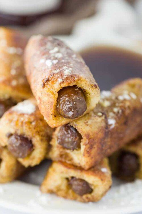 The ingredients include sausage links, vanilla extract, eggs, cinnamon and maple syrup.