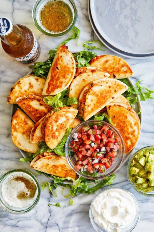 The ingredients include Mexican blend cheese, leftover rotisserie chicken, flour tortillas, cilantro and salsa.