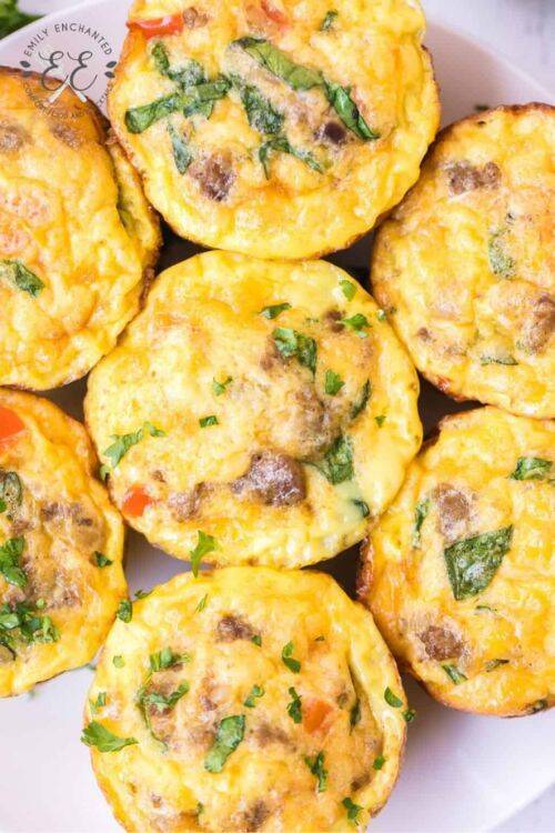 The ingredients include eggs, ground sausage, onion powder, garlic powder and red bell pepper.