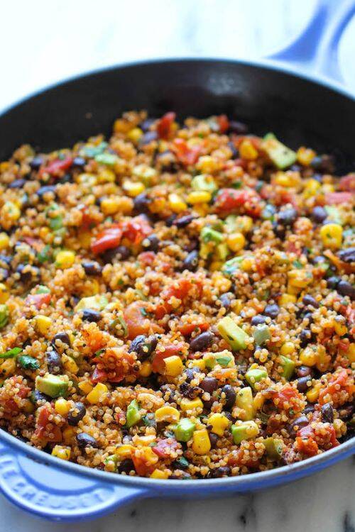 The ingredients include jalapeno, corn kernels, quinoa, chili powder and cumin.