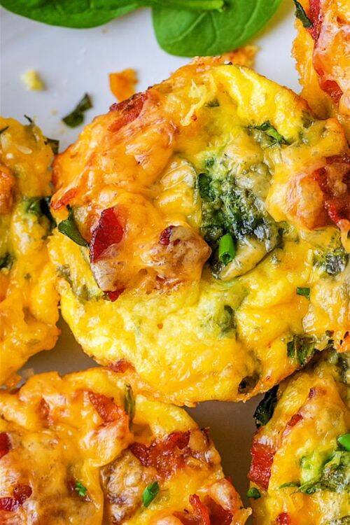 The ingredients include bacon, cheddar cheese, baby spinach, eggs and Tobasco sauce.