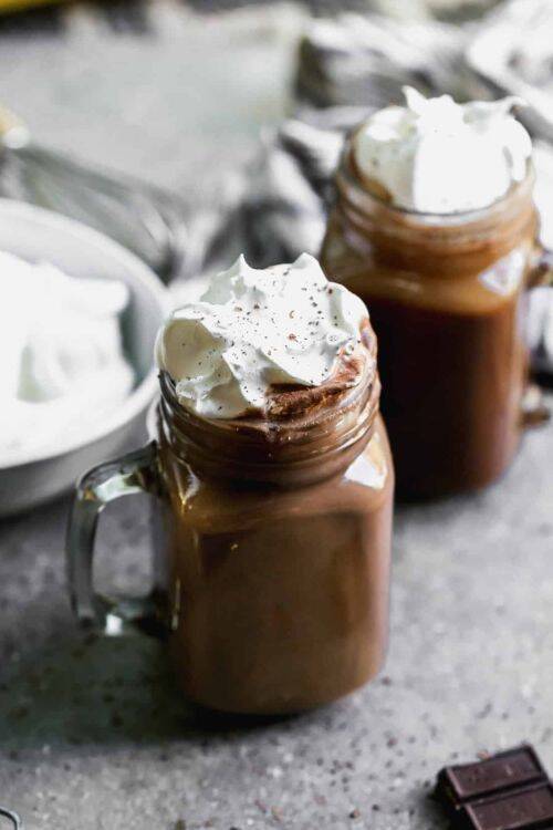 Top it up with whipped cream, mini marshmallows, peppermint, chocolate syrup, white chocolate chips or sprinkles.