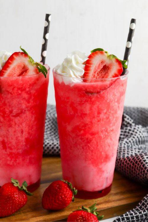 It just needs 5 minutes to make. The ingredients include strawberry soda, strawberry syrup and vanilla coffee creamer.