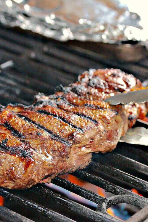 The ingredients include steak, cornstarch, paprika, chili powder and brown sugar.