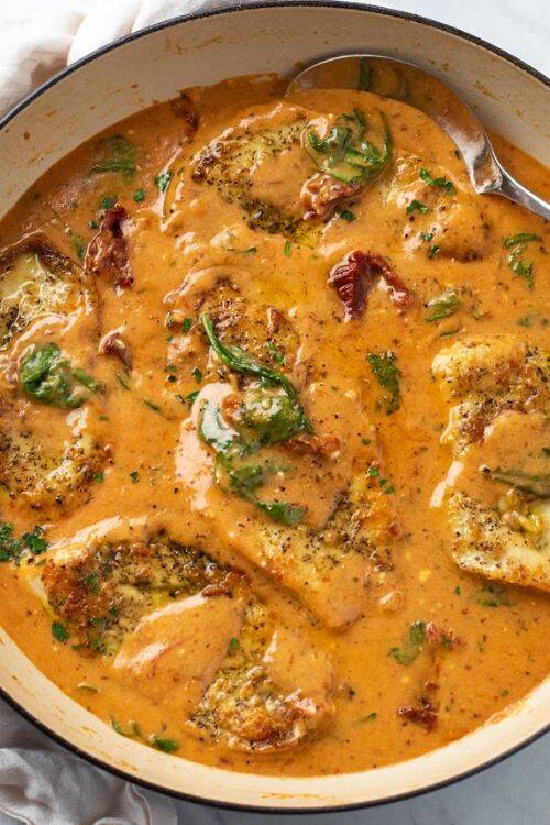 The ingredients include chicken breasts, cornstarch, all purpose flour, Italian seasoning and sun dried tomatoes.