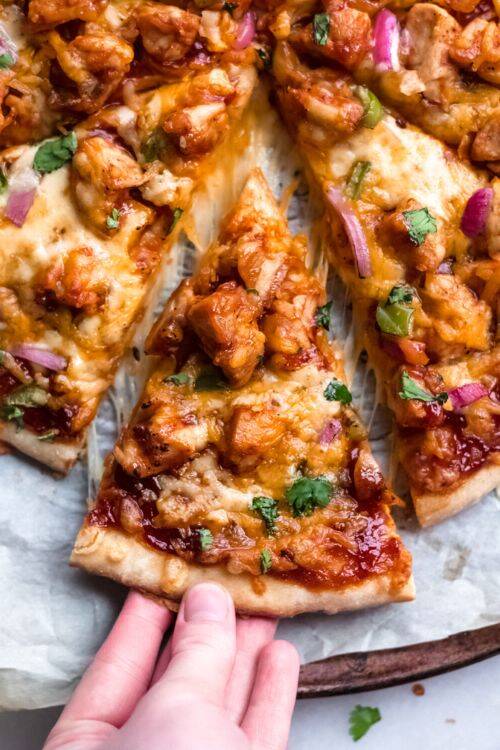 The ingredients include barbecue sauce, all purpose flour, chicken breasts, onion and active dry yeast.