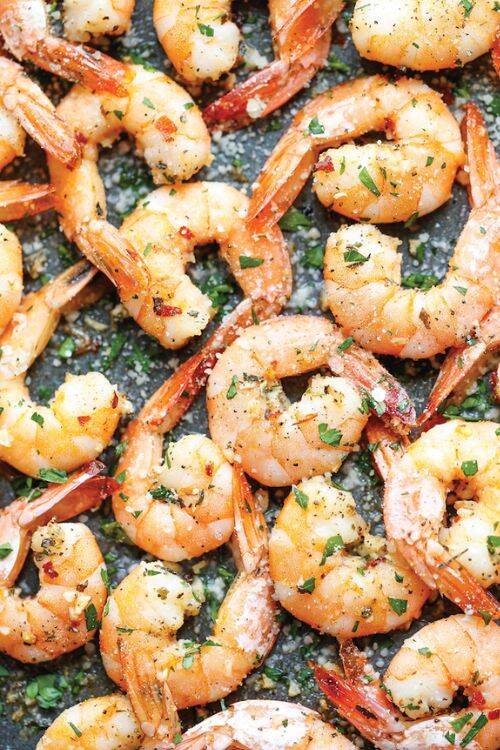 The ingredients include shrimp, parsley, basil, oregano, lemon, salt, and garlic. It is one of my favorite seafood appetizers.
