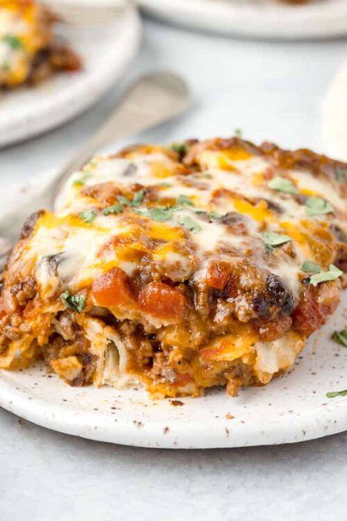 With this dish, you will not feel the need for any side dish. You need to preheat the oven to 375 degrees Fahrenheit. With the combination of ground beef, tortillas, garlic, pepper you can make this wonderful dish.