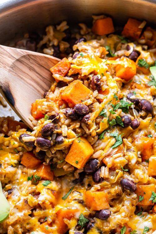 Southwest Sweet Potato, Black Bean & Rice Skillet