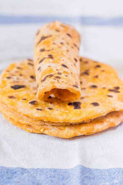 The ingredients include mashed sweet potatoes and all-purpose flour. These tortillas are perfect for enchiladas or tacos. You can make this recipe with regular potatoes too.
