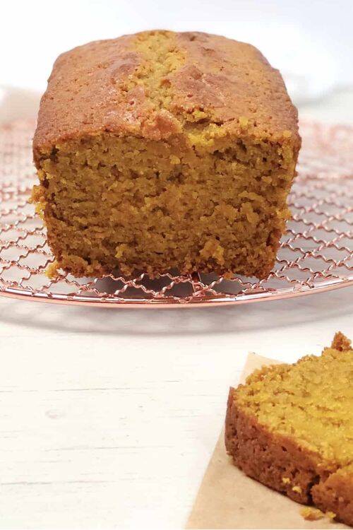 The ingredients include flour, nutmeg, pumpkin puree, vanilla, baking powder, molasses, and rolled oats.