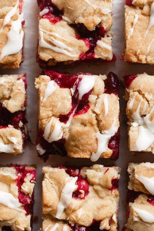 The ingredients include unsalted butter, baking powder, cranberry filling, all purpose flour, egg and cinnamon.